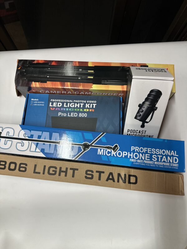 Podcast mic, podcast mic stand, led 800 RGB light, big phone/camera tripod