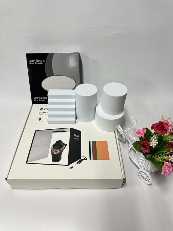 30cm Lightbox, White geometric shapes, 20cm Rotator, Tricycle flowers