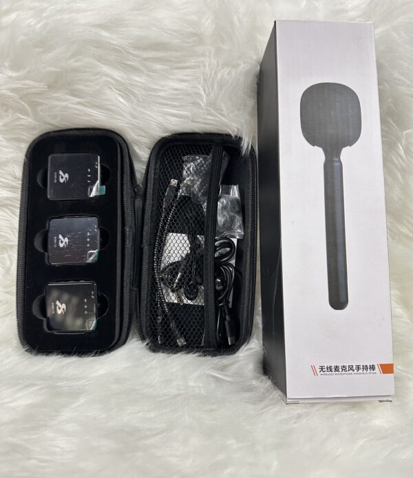 2pcs wireless microphone with one interview microphone stick. For iPhone and Android type C.