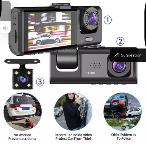 Dash Cam W/ IR Night Vision Loop Recording & 2″ IPS Screen 1080P 3 Camera , DVR recorder, video recorder, Vehicle DVR