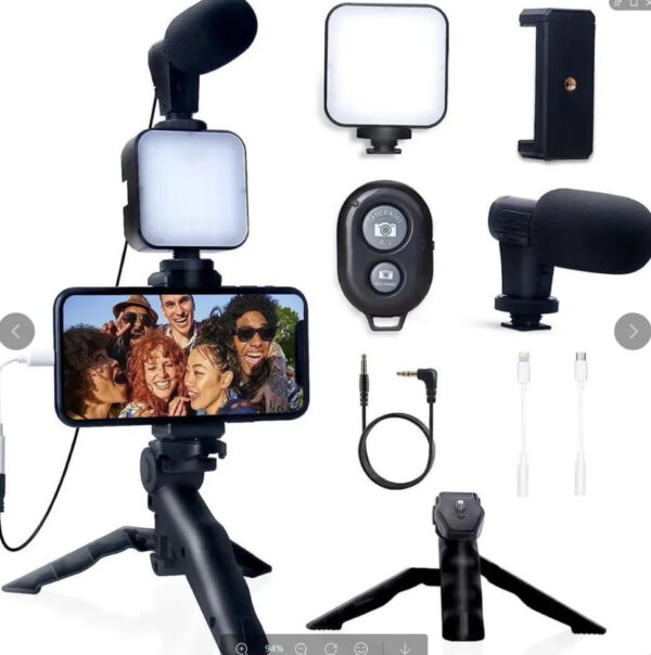 Mini vlog or video making kit for mobile phones. All accessories shown are included in the set.